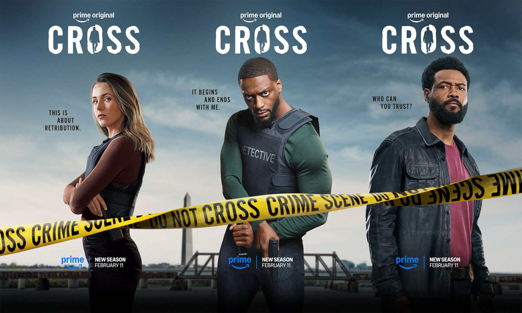 Building on the branding we had established for Season 1 of Cross back in 2024, we were excited to delve back into DC for Season 2. We were tasked to expand the Cross universe through new environments, higher stakes, and tactical copy. This suite of three character posters for Cross, Kayla, and Sampson encapsulates these higher stakes, all whilst highlighting the detective audiences know and love.
